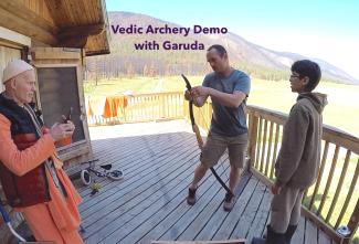 Bhakti Raghava Swami blessed the Vedic Eco Village & Ahimsa Goshala in British Columbia, Canada 🇨🇦 with his association this spring. During the week we explored Vedic Culture & Sociology, Cows Care &